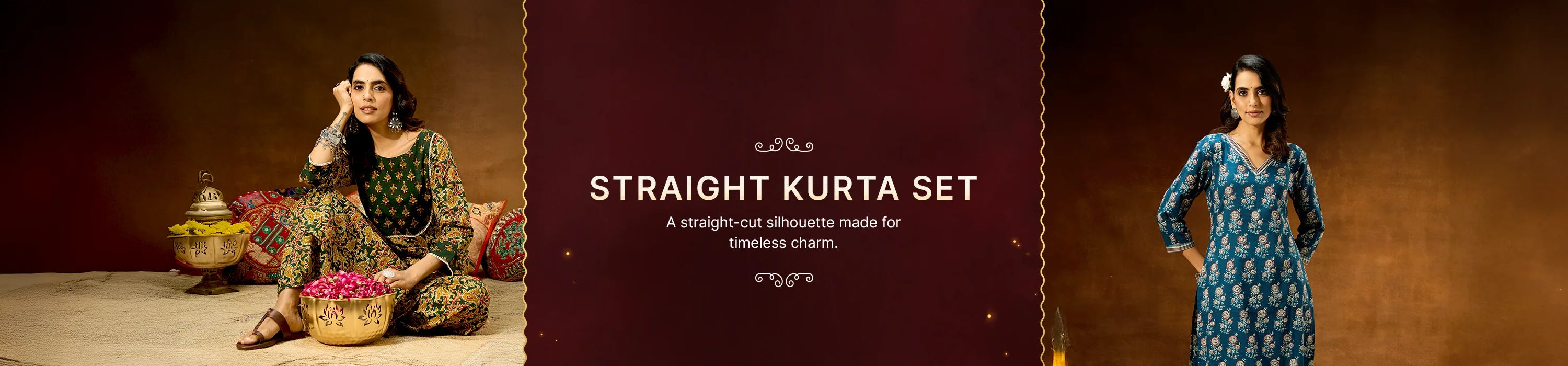 Naari By Shree Women's Brown Silk Blend Zari Embroidered Straight Kurta Pant Set